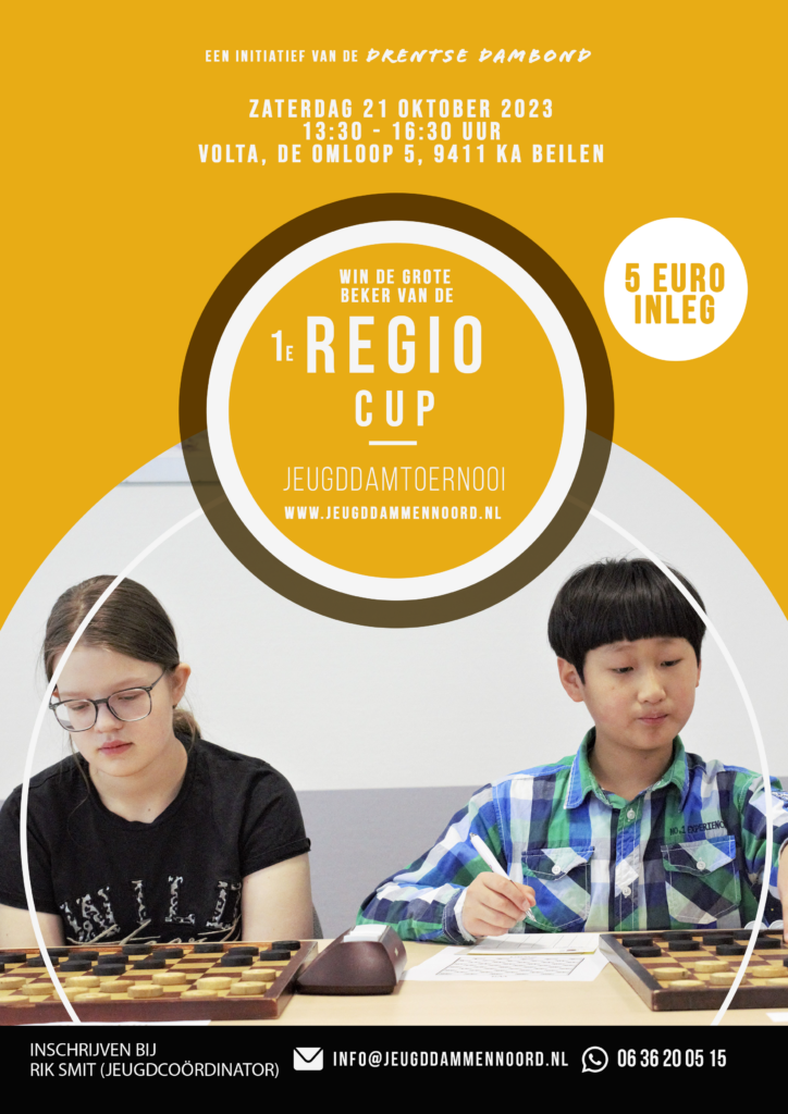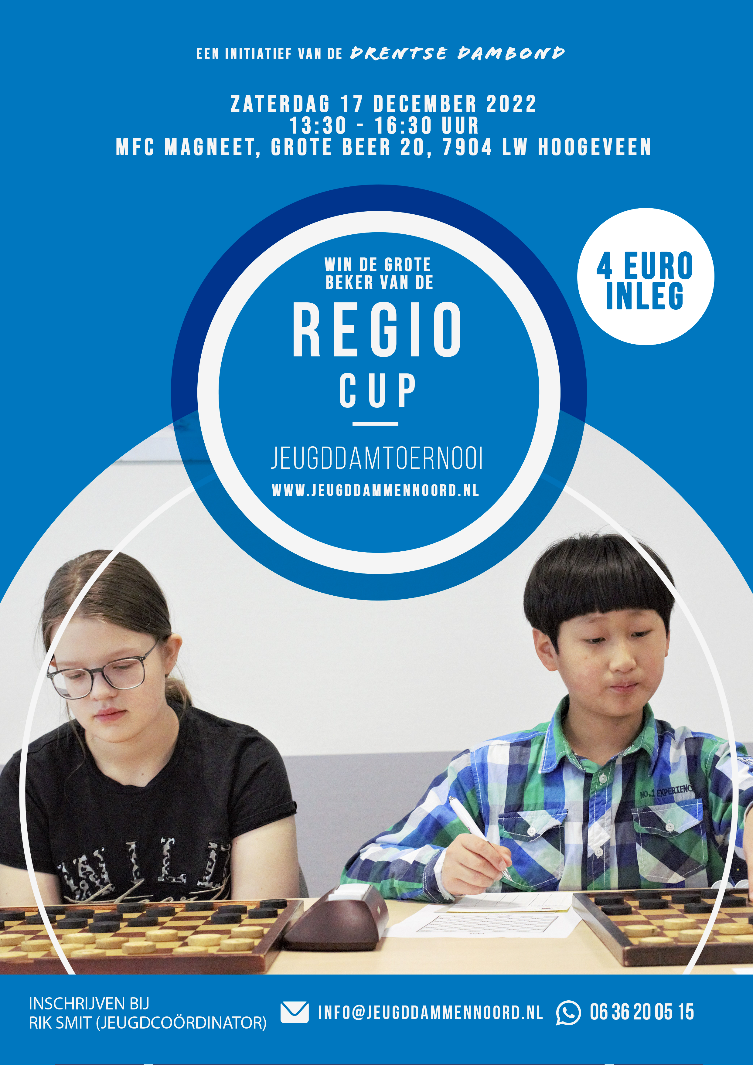 Ook dit seizoen hebben organiseert de Drentse Dambond (DDB) weer de Regio Cup. Dit seizoen worden vijf jeugdtoernooien georganiseerd. Onderstaand de data en bij sommige plaatsen is de locatie ook al bekend.